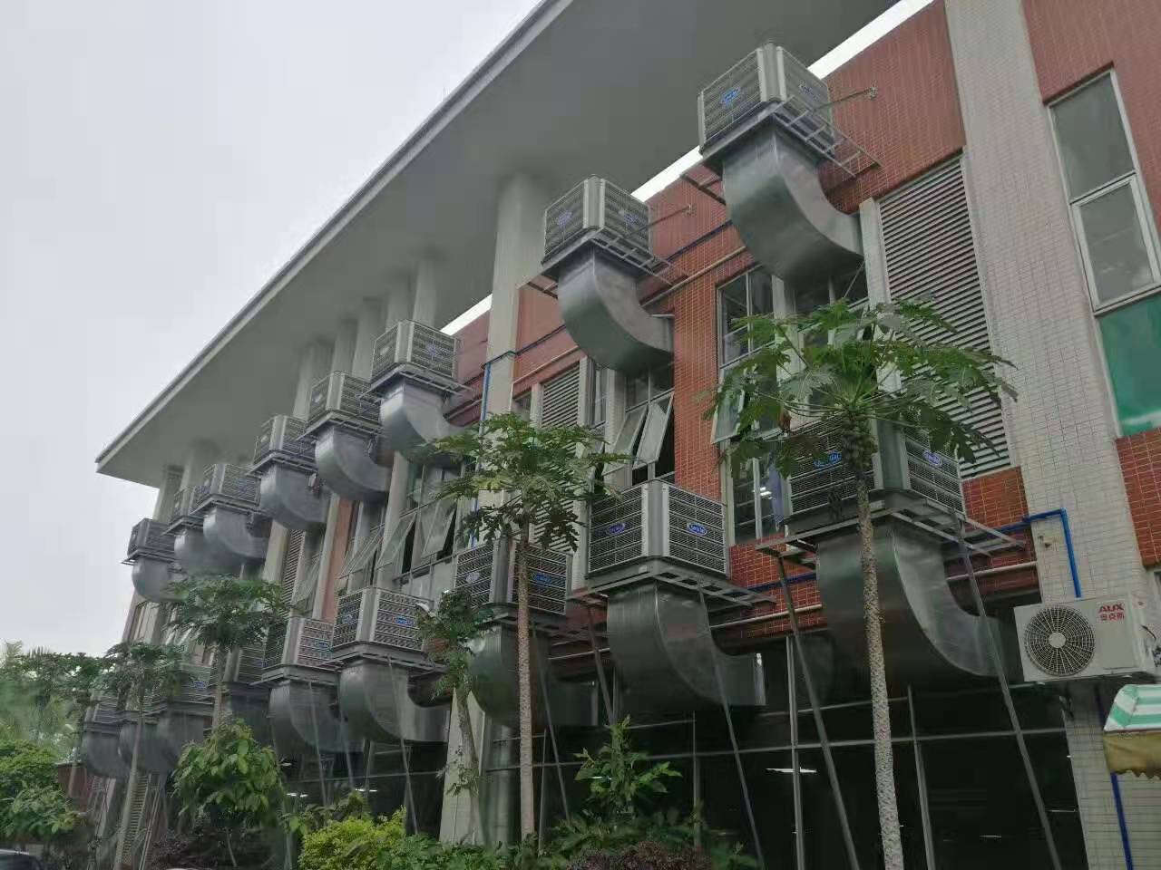 為了提高車間的工作環(huán)境,對車間進行通風降溫系統(tǒng)改造 ,工業(yè)冷風機為模具生產車間舒適降溫通風,主機安裝在模具車間室外不僅僅可以將外部空氣經過濕簾水蒸發(fā)變成新鮮冷風與室內空氣形成對流,達到通風、降溫、換氣、除味的效果,而且可以把門窗打開,將室內的粉塵異味通過對流排出。除此之外,工業(yè)冷風機還可以對員工崗位進行局部送風,每臺平均可覆蓋面積100㎡,1小時僅需1度電。